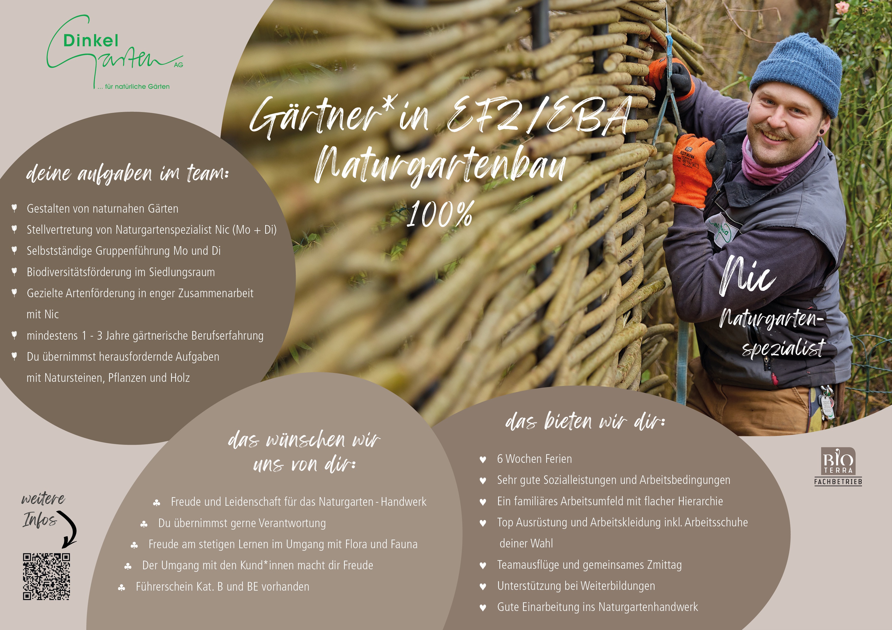 Wir suchen dich - Gärtner*in EFZ/EBA Naturgartenbau (100%)
